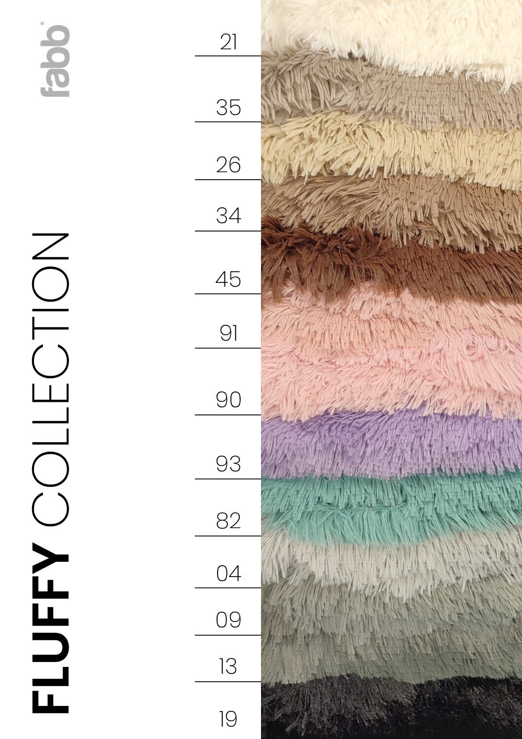 | Farben | FLUFFY 04, FLUFFY 09, FLUFFY 13, FLUFFY 19, FLUFFY 21, FLUFFY 26, FLUFFY 34, FLUFFY 35, FLUFFY 45, FLUFFY 82, FLUFFY 90, FLUFFY 91, FLUFFY 93 |