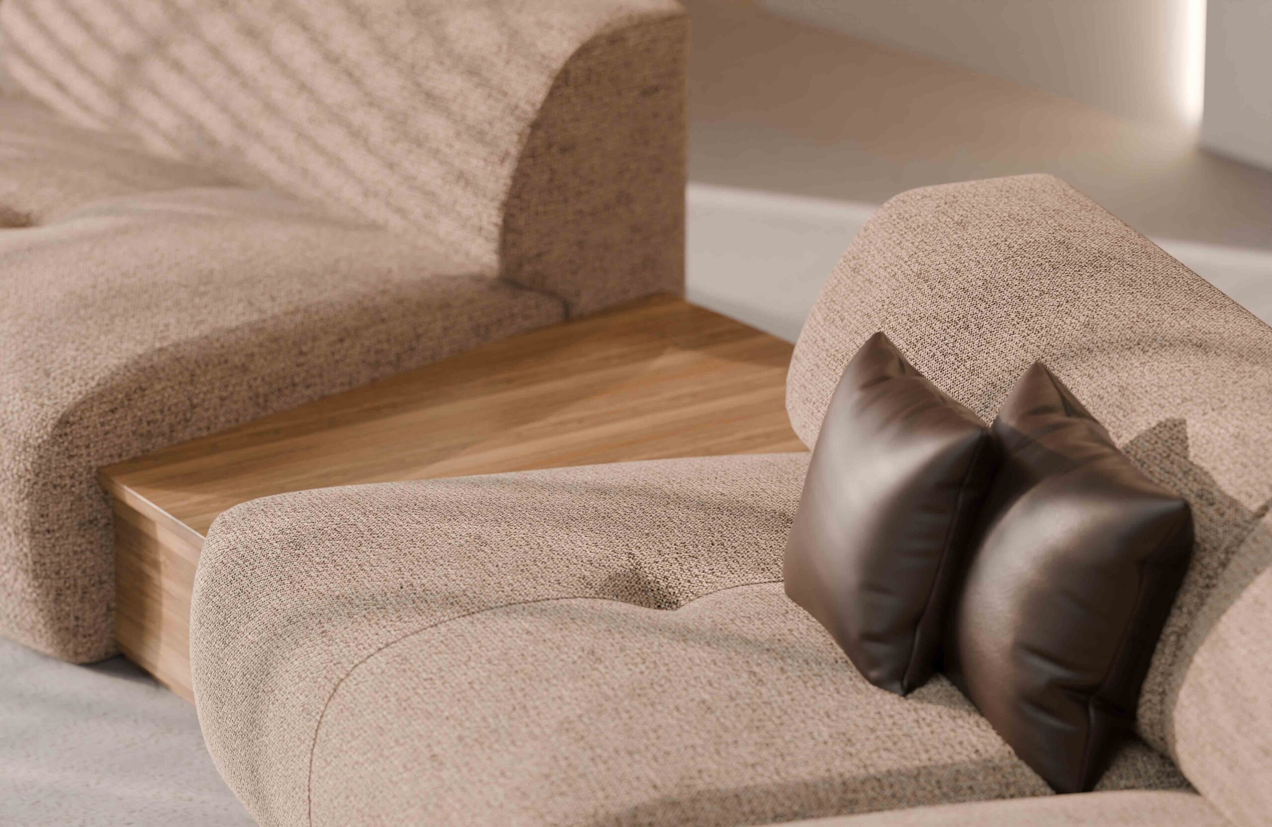 Zur Steigerung der Funktionalität wurde die Rückseite des Stoffes mit einer Schicht aus Nadelfilz verstärkt und mit einer feinen Beschichtung versehen. Diese sorgt für zusätzliche Stabilität, mehr Weichheit und schützt effektiv vor dem Durchdringen von Vliesfasern aus der Polsterung.